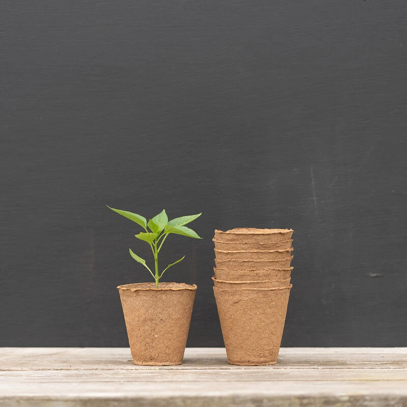 Fertil Pots are created using only two natural ingredients: 80% wood fiber, 20% peat moss, and nothing else. Binding is achieved through a patented technology. No glues. No waste. No hassles. Offered in quantities that fill five growing trays and also by the case. A size to fit almost any application. 4″ diameter x 4″ high.