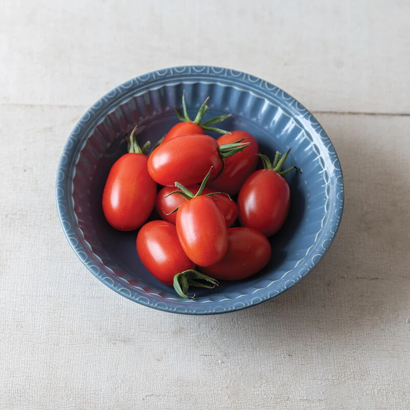 Abundant yields of 15–20 gm. fruits with classic grape shape and addictive flavor. Moderately sized plants are easy to manage. Strongly branched, yet tidy clusters can regularly set impressive fruit loads without bending. The high yields, however, do not sacrifice any rich grape flavor. A must-try for any grape tomato lover! Indeterminate.