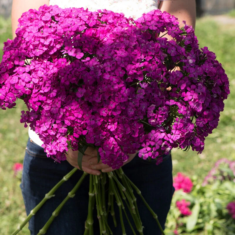 These brilliantly colored beauties bloom the first year and produce 5–7 stems that can reach 36″. The stems are thick, strong and glossy green, supporting huge, bright, vibrant purple blooms. Long vase life. Tender perennial in Zones 6–8. Best grown as an annual.