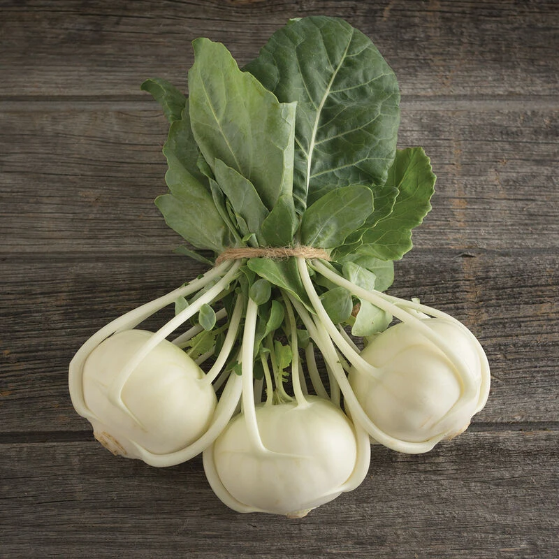 The first white kohlrabi. Beas is early and incredibly uniform. A real beauty with sweet, mild flavor and creamy internal color. Named for the Beas River in Northern India, where it was bred.