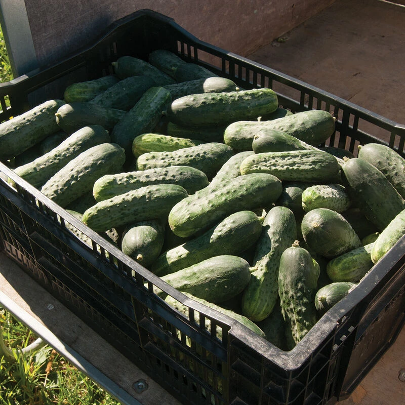 Excelsior produces dark green, blocky, nicely proportioned 4–5″ cucumbers with American-style spines. Vigorous, balanced plant with consistent fruit setting. Excellent flavor. Also does well in screen houses, in the field under row cover, or wherever else pollinators are absent. Parthenocarpic and gynoecious. USDA Certified Organic.