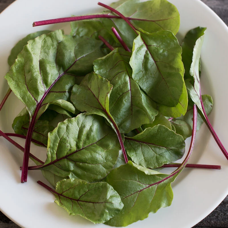 Matures early and evenly for a very uniform, productive harvest. Dark magenta stems and veins contrast beautifully with rich green leaves. Fresh Pak produces a higher leaf volume with fewer culls than OP beet green varieties. Consistently high quality in our trials. Strong seedling vigor. Intermediate resistance to Cercospora and high resistance to downy mildew. NOTE: For baby leaf and bunching greens only, as it does not form a marketable beet root.
