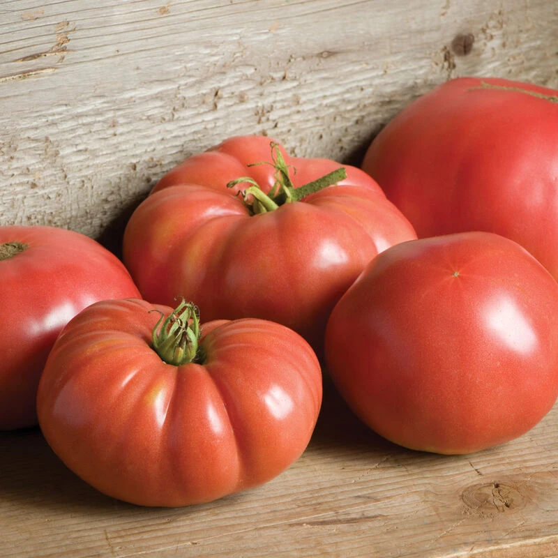 Recommended for higher productivity in a pink heirloom. Earlier, more uniform, and slightly smaller than Brandywine at 8-16 oz. Fruits have lots of deep, acidic tomato flavor and a rich, creamy texture. This is the regular-leaf strain, which is earlier and more productive than the potato-leaf strain. Indeterminate. USDA Certified Organic.