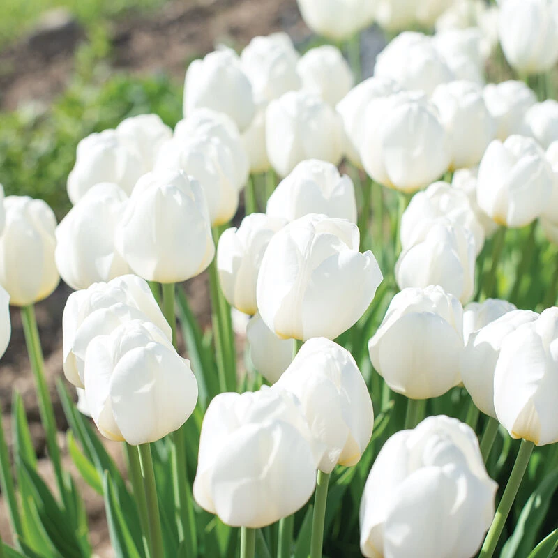 Pure white, 2 1/2–3″ tall blooms and classic tulip shape. Compared to Ivory Floradale, the primary difference is that Hakuun is bright white, whereas Ivory Floradale is ivory to pale yellow in color. Additionally, Hakuun has slightly shorter and stronger stems, and is a few days later to bloom than most other Darwin Hybrids. Hakuun is also known as ‘White Cloud’. A Darwin Hybrid type. 12 cm+ bulb size. 1 unit = 1 bulb. NOTE: Bulbs do not come pre-chilled; if growing in hardiness Zones 8–10, see growing information (below) for pre-chilling instructions.