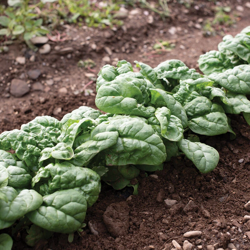 Medium-green, upright spinach with slightly elongated, round, cupped leaves. Quick to bolt, so best suited for early spring, fall, and winter sowing.