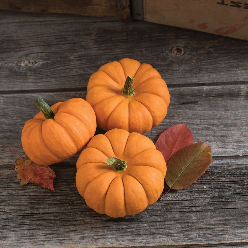 Uniform and high yielding Jill-Be-Little has a flattened shape and wide, deep ribs. Orange, 1/2 lb. fruits measure 3–4″ diam. x 2 1/2″ tall. Great for tabletop and window displays, especially when paired with Spark. Improved disease resistance over Munchkin, which it replaced. Strong plants with medium vine. We recommend planting at 2′ in-row spacing.