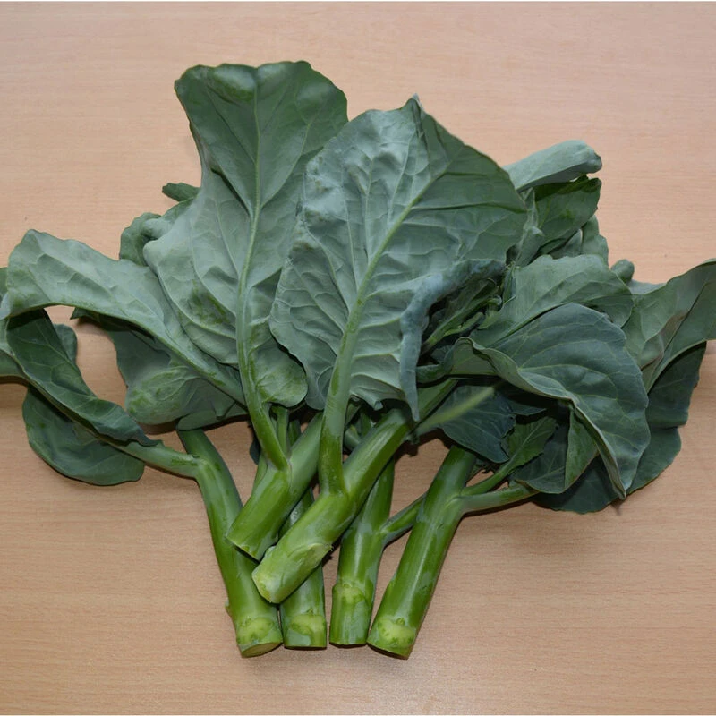 Spears are tender and sweet, developing a mustardy flavor as they mature. Although transplanting is recommended, it performs better direct-seeded and at tighter spacing than our other mini broccoli varieties (4–6″ in-row). Can be 1–2 weeks earlier than Happy Rich, but less heat tolerant and with a shorter harvest period. This Chinese specialty (also known as Kailaan or Chinese kale) can be sold loose or in bunches.