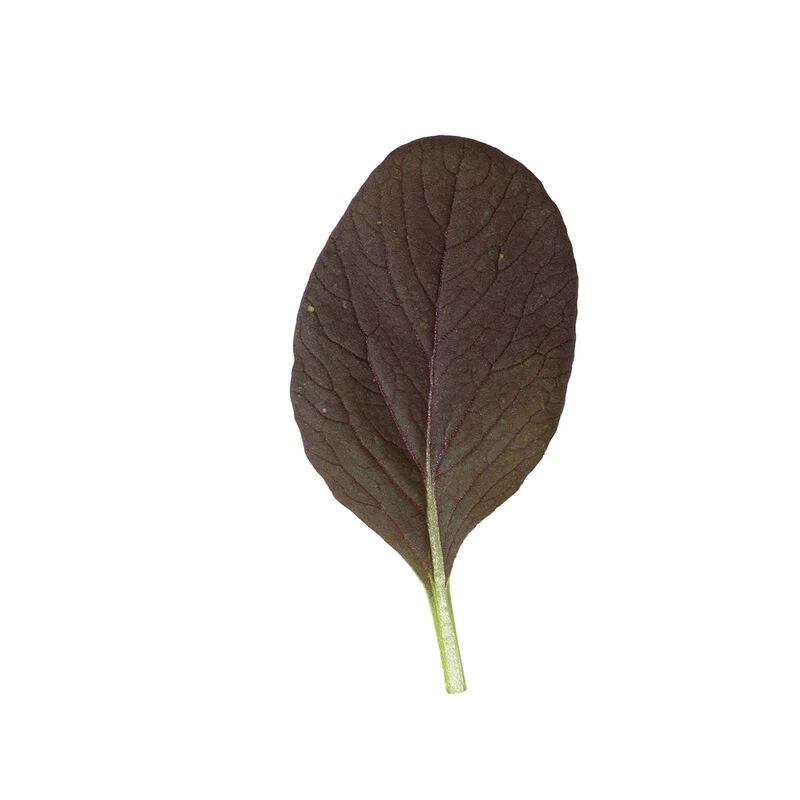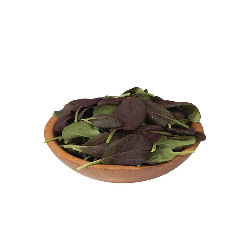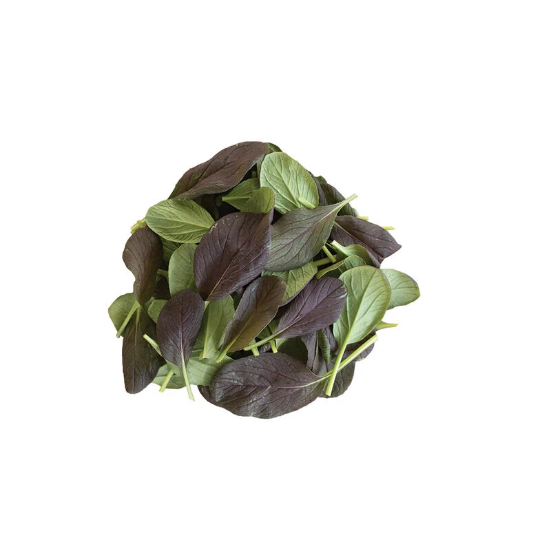 12″ tall plants are vase-shaped with bright red leaves and greenish-red stems. Good for mixed packs with green- or white-stemmed pac chois. Also excellent as a baby leaf.