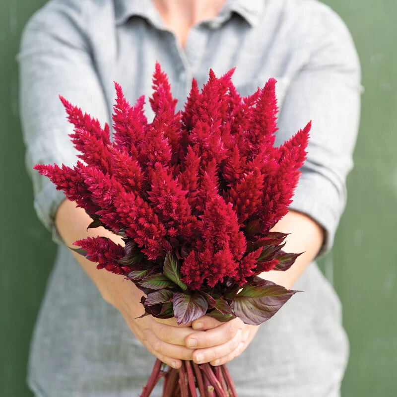 Uniform, productive plants. 3–5″ long, deep red, feathery spikes on attractive, dark red stems and leaves. Plants are slightly more compact compared to others in the Sunday Series. Raw, uncoated seed.