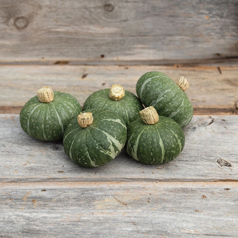 Cute, sea-green squash sized perfectly for single servings, soup bowls, and more, with little to no wasted fruit. Great for small families and singles. With heavy yields and exceptional storage, Sweet Jade will be the next market grower and CSA favorite. Fruits are about twice the size of the Shokichi series, with very few culls. Bred by Dr. Lindsay Wyatt at Johnny’s. Avg. weight: 1–2 lb. AAS winner. USDA Certified Organic.
