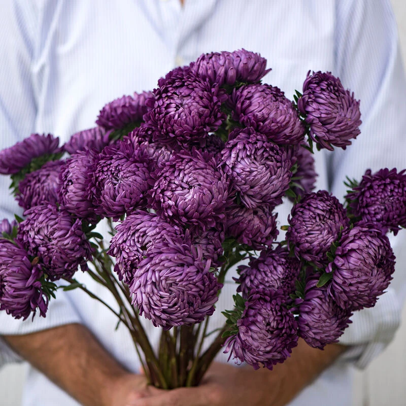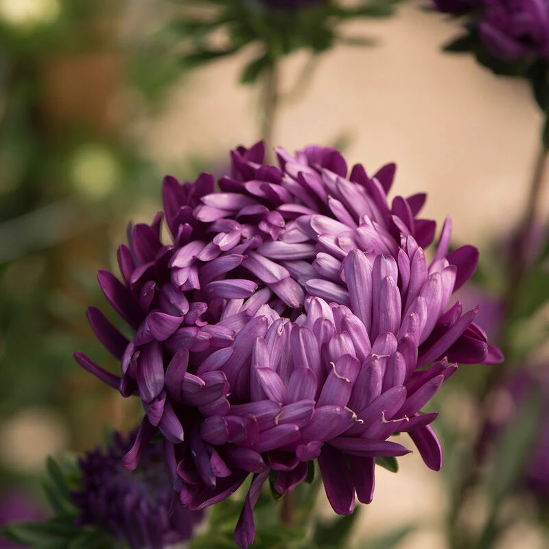 All the elegance and beauty of peonies and garden mums in an easy-to-grow annual. Rich plum-colored blooms avg. 2–3″ with 13–20 stems per plant. Tower features uniform bloom time and plant height across the series and mix. Also known as summer aster.