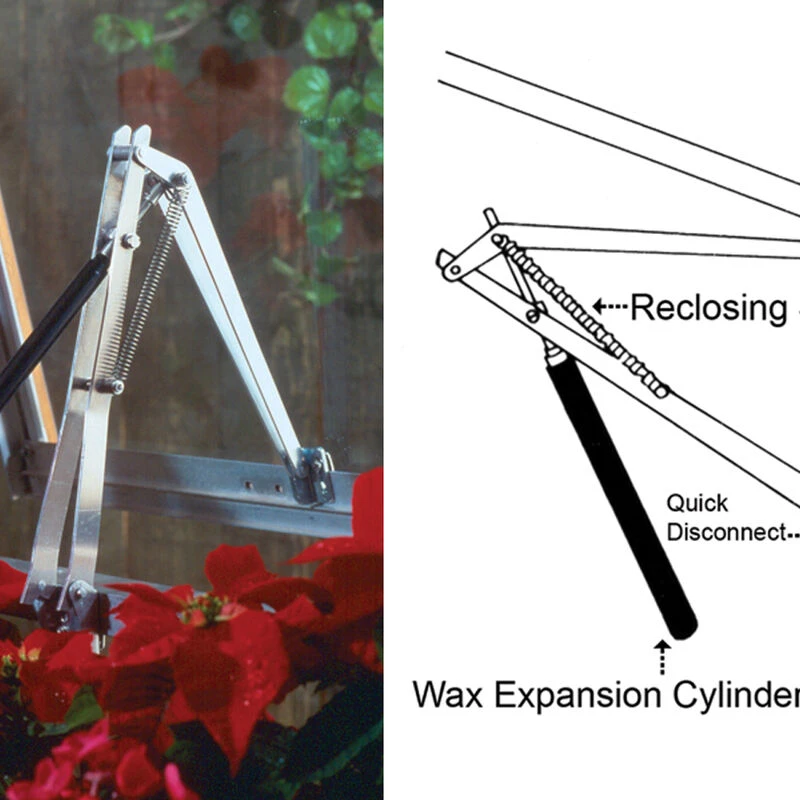 Temperature-responsive opener for greenhouse windows and traditional cold frames. Can be adjusted to open between 60°F/16°C and 77°F/25°C. Extends to 18″, lifts up to 15 lb. Made from corrosion resistant materials including aluminum and stainless steel. Quick-disconnect mounting bracket is especially useful when mounted on cold frames. Also appropriate for roof and wall vents. Winter Storage: It is recommended that your Univent – or at least the cylinder – is removed from your greenhouse or cold frame for the winter. Store it in a dry place and do not forget to lubricate the piston rod before remounting in the spring. Also check that the piston rod moves smoothly.