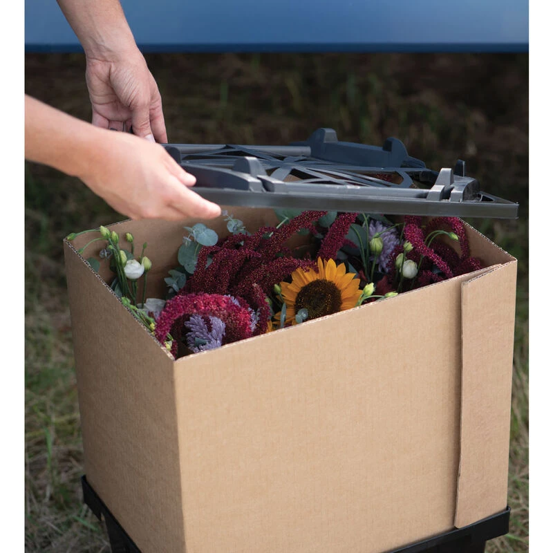 Fits snugly over Procona Valencia Series containers and collars for secure stacking. Stacking ridges ensure that Procona containers placed on top of each other do not slide out of place during transport. Flowers are kept cool and fresh as large ventilation holes provide optimal air flow, even at the center of a fully loaded truck! Can also be used without collars for efficient, professional-quality vegetable CSA boxes. Two collar heights and two container sizes available so you can customize your system for different bloom heights and stem lengths. Read more about the Procona System below.