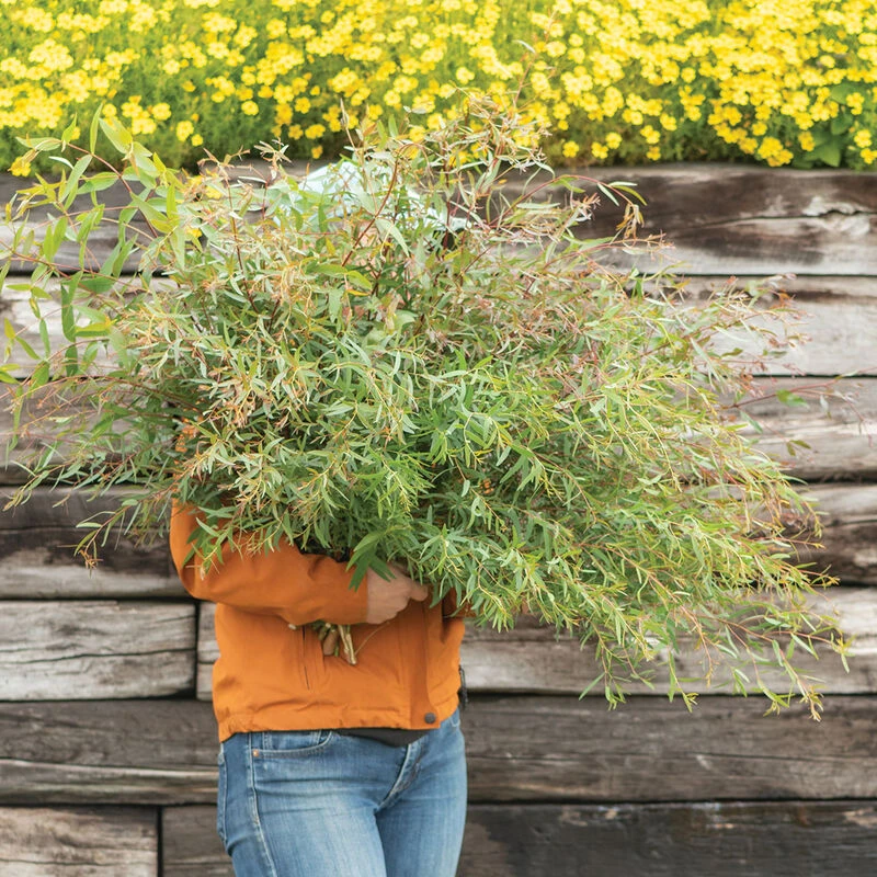 Vigorous, upright plants produce strong stems of delicate, feathery leaves. 2–4″ long, slender leaves in shades of green and gray. Some variation in leaf color and size. Also known as gum, and euc. Tender perennial in Zones 9–11.